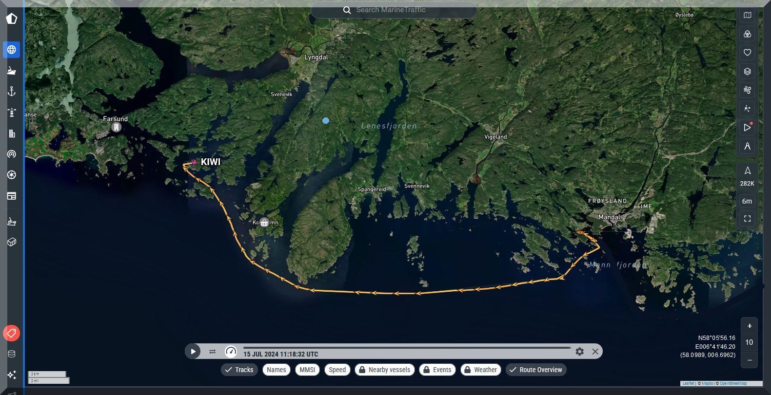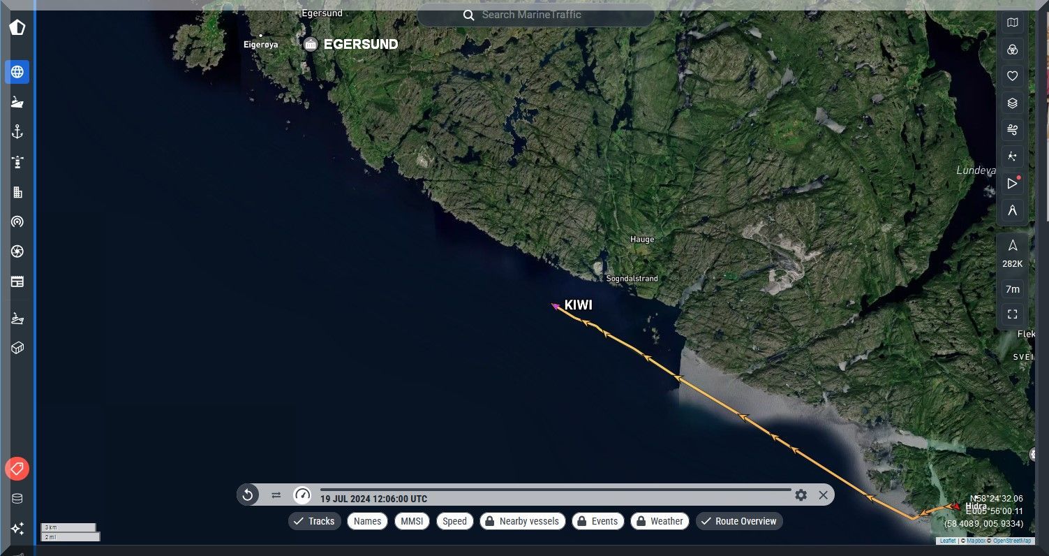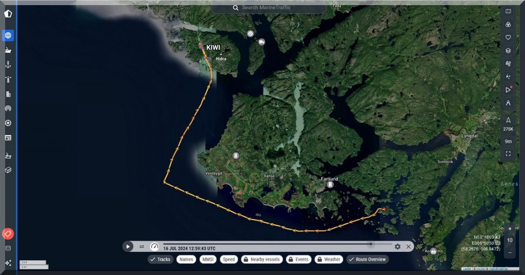SY KIWI ist um ca. 11 Uhr in Rasvåg aufgebrochen. Egersund könnte das nächste Ziel sein. Das schaue ich mir abends wieder genauer an.
