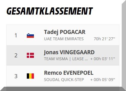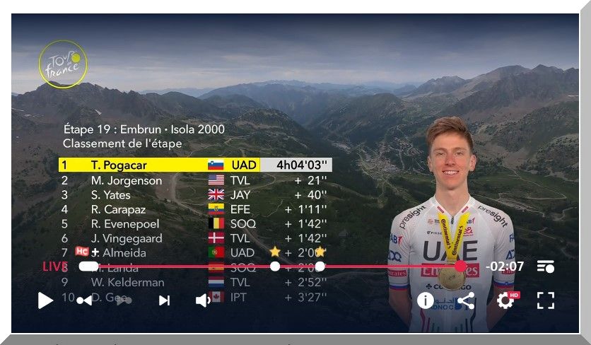 16:35 Uhr – T. Pogacar gewinnt die 19. Etappe.