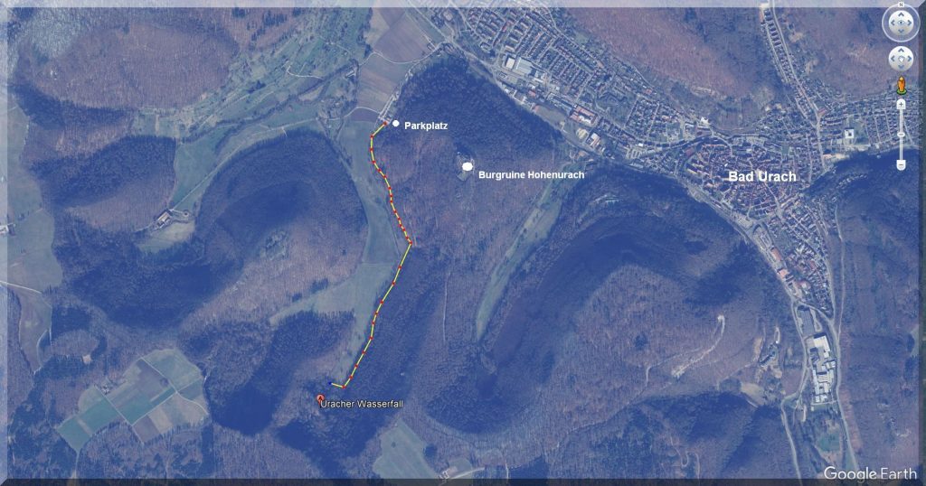 14:15 Uhr – Wir fahren nach Bad Urach und wandern zum Uracher Wasserfall.
