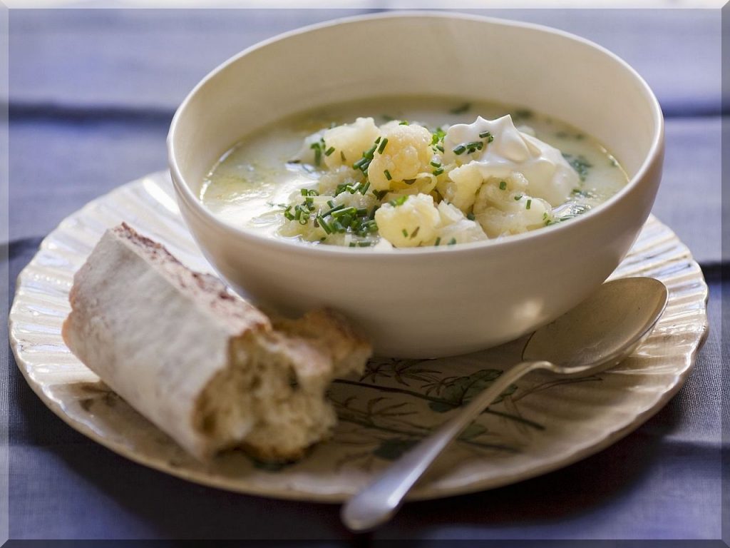 17:30 Uhr – Zum Abenessen gibt es eine Blumenkohltütensuppe in die ein frischer Blumenkohl eingearbeitet wird.