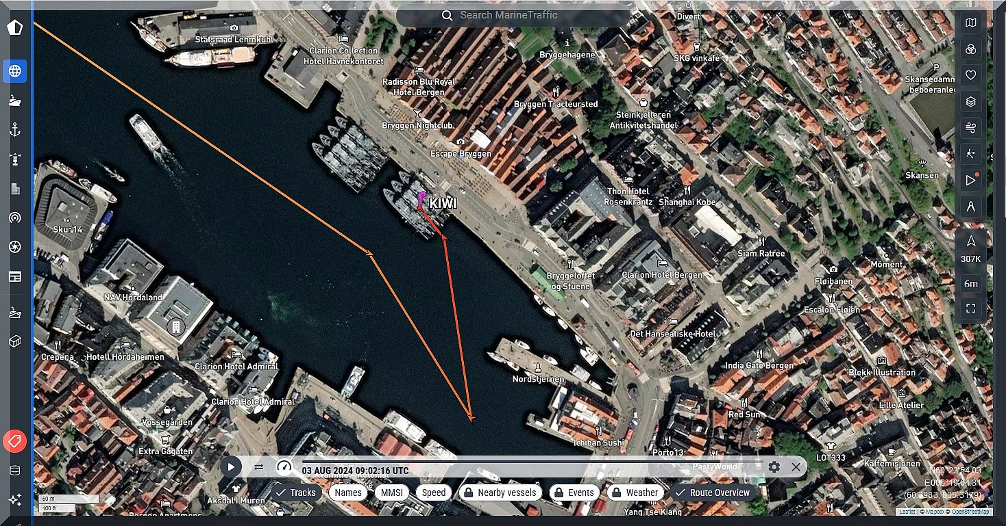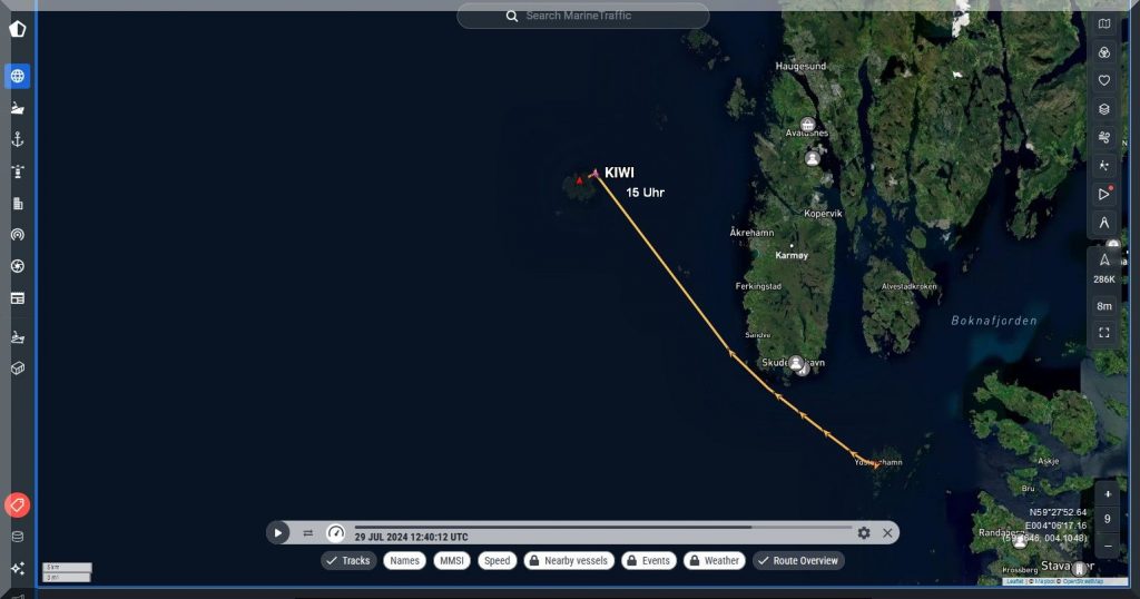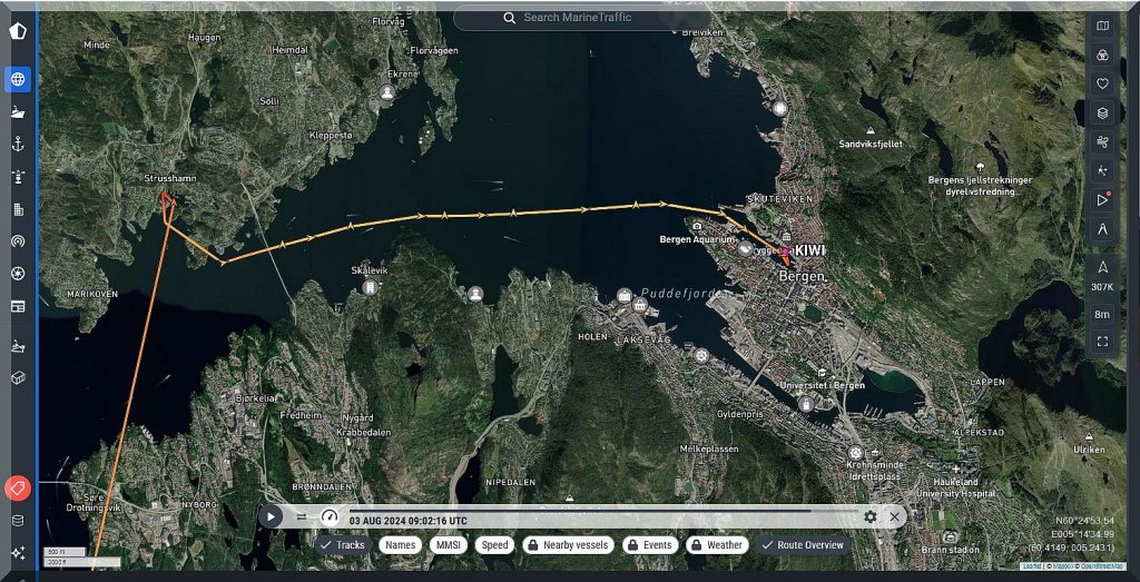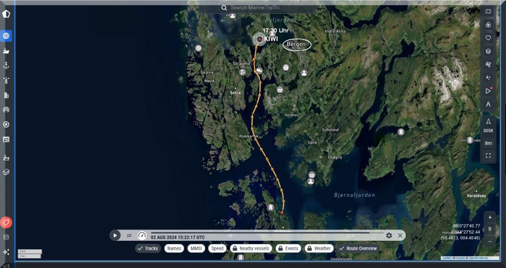 SY KIWI ist um 11 Uhr in Bergen eingetroffen