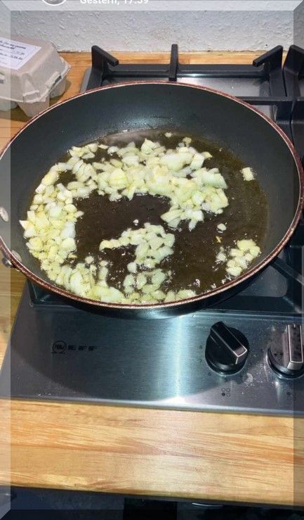 18 Uhr – Wir bereiten uns zum Abendessen Pfiifferlinge mit feinsten Baconstreifen, Sahnesoße, 1/8 ltr. Gemüsebrühe u. Petersilie, Salz, Pfeffer, Rosenpaprika, 1 Prise Chiliflocken nebst Rührei u. Kartoffelpüree zu.: