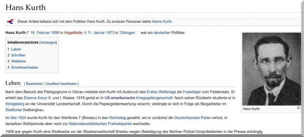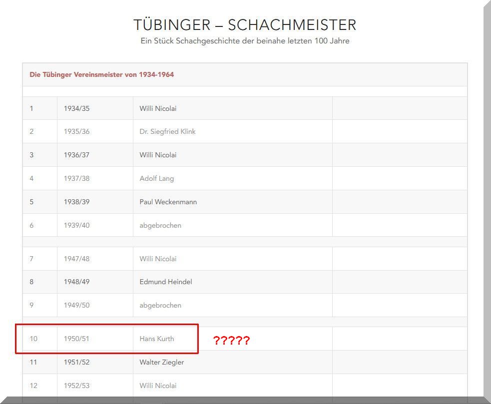 Soeben rief mich Josef vergebens an, der in der Tübinger Schachszene recht aktiv ist und befragte mich per Anrufbeantworter, ob ich einen Hans Kurth in meiner Verwandschaft hatte: