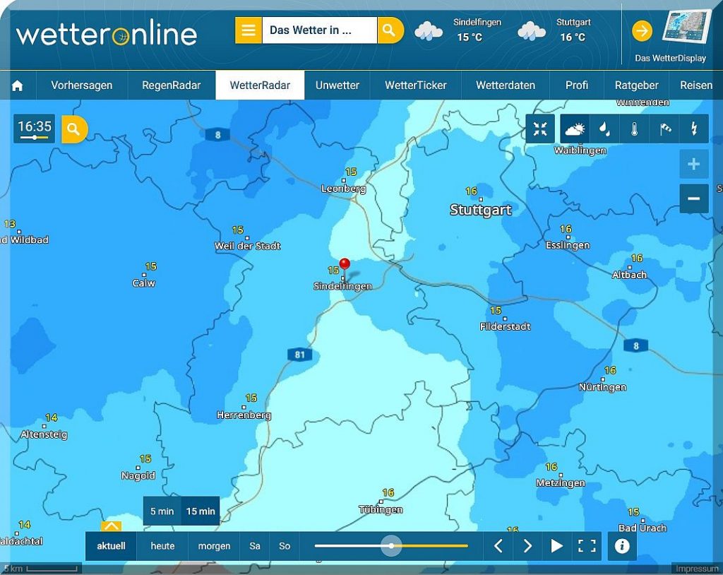 ……. heute regnet es im Grßraum Stuttgart nur einmal, nämlich dauernd