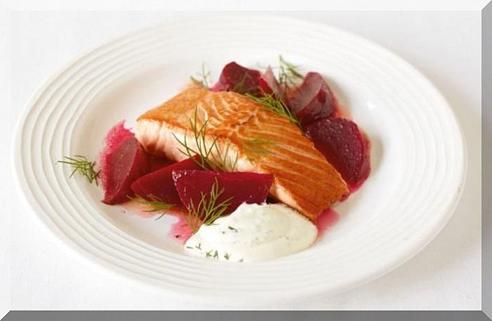 18 Uhr – Wir haben uns ein leckeres Abendbrot zubereitet: Lachsschnitte mit Pellkartoffeln und Rote Bete mit Balsamico und Butter verfeinert und dazu noch einen Frischkäsedip mit Schnittlauch.