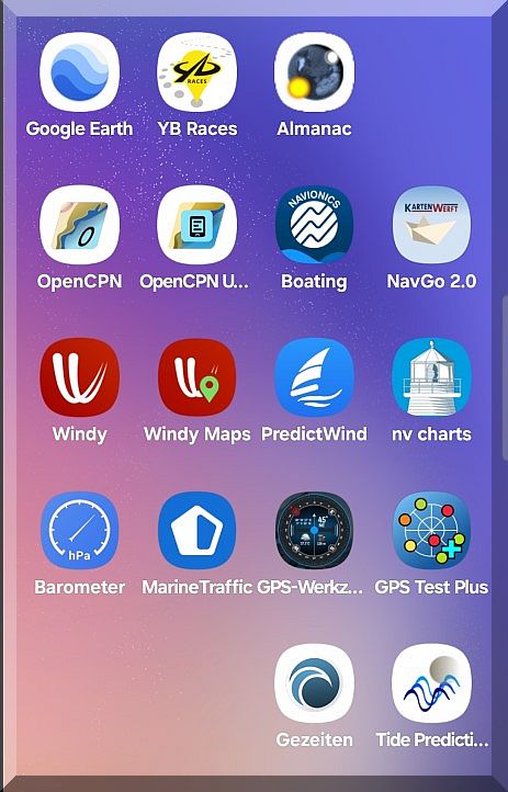Aber ich habe die Astronavigation nicht lange betrieben, denn ich kaufte mir 1994 meinen ersten GPS-Empfänger GARMIN45 (620 DM), der heute noch funktionsbereit ist. Doch heutzutage sind wir ja alle mit einem Smartphone oder Tablet und entsprechenden APPs zur Navigation ausgestattet,: