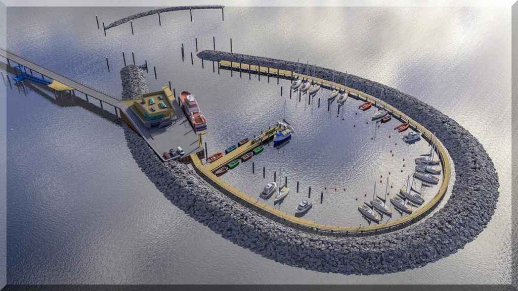 Der neue Inselhafen ersetzt den ehemaligen Nothafen Darßer Ort im Nationalpark Vorpommersche Boddenlandschaft, der inzwischen vollständig renaturiert ist.