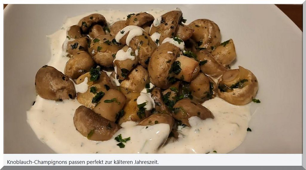 Wir geben noch durchgedrückten Knoblauch dazu und ein wenig Sahnesoße.