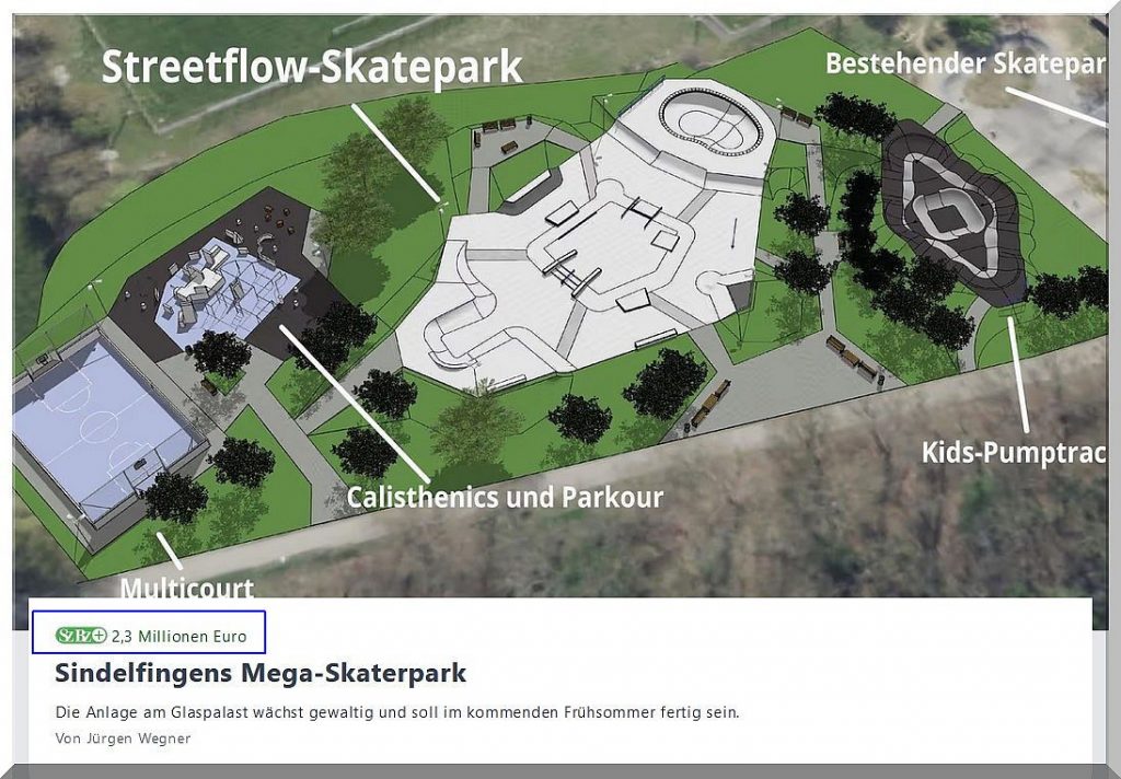 Wenn der Winter seinen kalten Atem ausgehaucht hat und Skater, BMXer- und Scooter-Fahrer in die nächste Saison starten, sollen sie es auf einer Anlage tun, die ihresgleichen sucht. Sie ist dann mehr als doppelt so groß wie heute. Sie hat mehr Aufenthaltsflächen und Sitzmöglichkeiten. Sie bekommt eine Notrufsäule, Flutlicht und einen Wasserspender und spricht auch neue Zielgruppen an: Calisthenics-Sportler, die mit eigenem Körpergewicht an einer Art Klettergerüst trainieren.