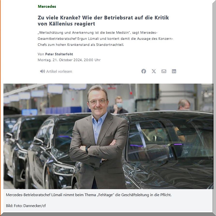 2015 hatte die Geschäftsleitung von Mercedes-Benz geglaubt, die Antwort auf den hohen Krankenstand in den deutschen Konzern-Standorten gefunden zu haben. Ein Anwesenheitsbonus sollte die Fehltage der Mitarbeiter und Mitarbeiterinnen senken und damit die Produktivität steigern. Wer ohne einen krankheitsbedingten Fehltag durchs Arbeitsjahr kam, erhielt eine Bonifikation in Höhe von 300 Euro. Das Projekt wurde 2019 wieder eingestellt, nachdem kranke Mitarbeiter wegen des Bonus’ am Arbeitsplatz erschienen.