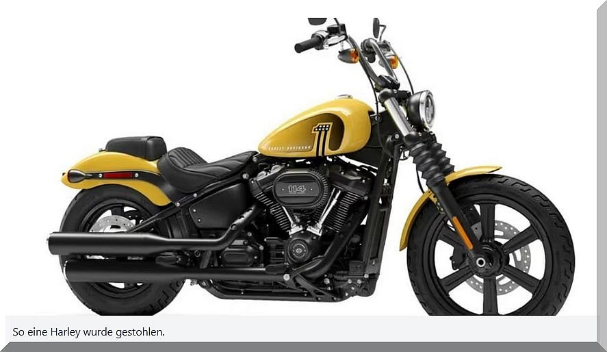 Der Kollege folgte dem Täter und sah, wie dieser auf eine gelbe Harley-Davidson Street Bob 114 stieg und in Richtung des Flugfelds davonfuhr. Das Motorrad trug Böblinger Kennzeichen (BB-). Den Wert der Maschine schätzt man auf über 20 000 Euro. Der Täter ist etwa 30 Jahre alt, circa 1,70 Meter groß, hat ein südländisches Erscheinungsbild, einen Dreitagebart und trug eine Sonnenbrille. Er war mit einem Kapuzenpullover und einer schwarzen Weste bekleidet.