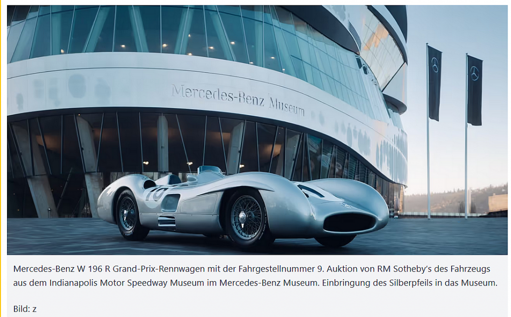 Wertvollster verkaufter Grand-Prix-Rennwagen. Hitzige Bietergefechte am Telefon und vor Ort im Mercedes-Benz-Museum.