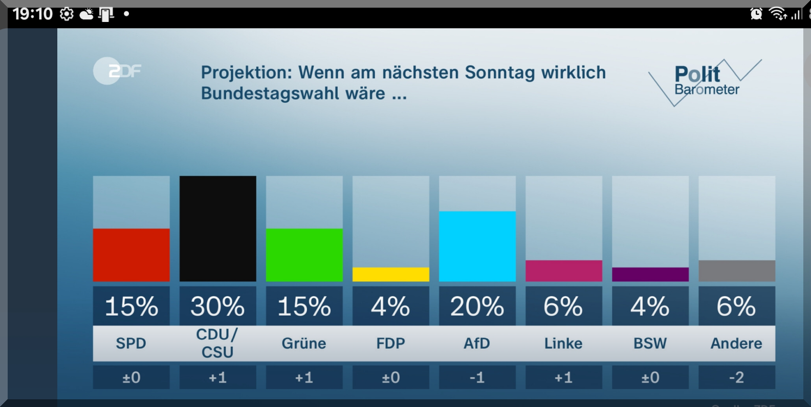 Meine Politikverdrossenheit ist so ausgeprägt, dass ich schon seit mehreren Wahlperioden auf dem Stimmzettel keine Partei entdecken kann, der ich meine Stimme geben möchte. Leider gibt es für diese Art Wähler keinen Kreis auf dem Stimmzettel, den man ankreuzen könnte. Würde mich interessieren wieviel Prozent der Bürger sich dafür entscheiden würden. Trotzdem werde ich einer der Parteien meine Stimme geben.