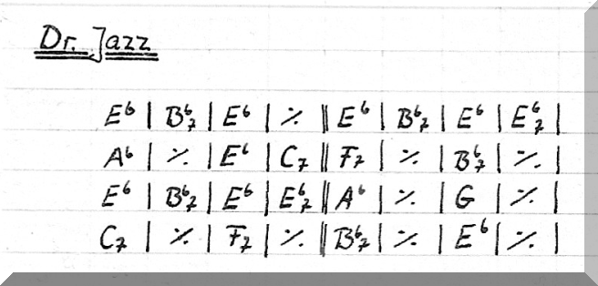 Das Lied habe ich immer mit meinem Banjo begleitet. Den Text und die Harmonien hatte ich mir bei einer Berliner Jazzband abgeschrieben – sh. nachstehend.