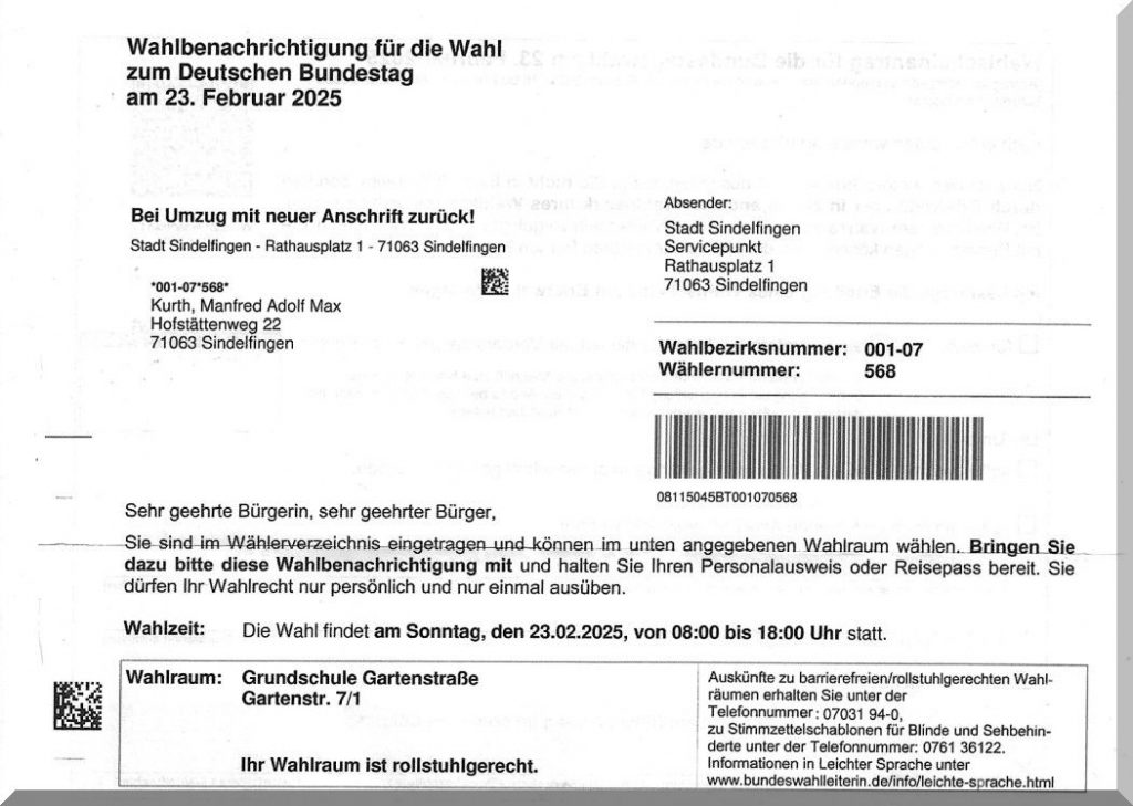 …………… aber trotzdem gehe ich morgen wählen, denn man sollte sich nicht darum herumdrücken, auch wenn ich auf dem Wahlzettel niemanden finden werde, dem ich meine Stimme aus Überzeugung geben möchte. Also versuche ich, mich für mein vermeintlich geringste Übel zu entscheiden. Meine Politikverdrossenheit war noch nie so ausgeprägt.