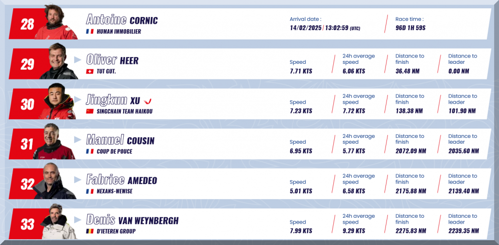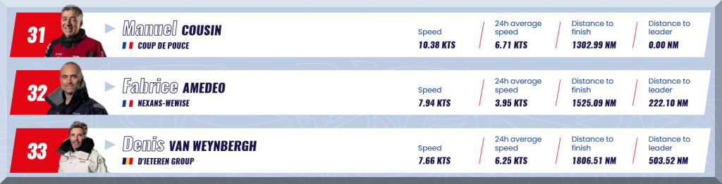 Dann folgen noch die 3 Nachzügler mit etwa 2000 Seemeilen Rückstand.