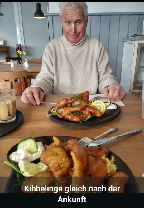 Wir sind wieder daheim. Im Marktkauf haben wir wieder Skreifilet zum reduzierten Preis bekommen: 29,90 € anstatt 47,90 € das Kilo. Da mußten wir zuschlagen. Uns reichten 500 g.