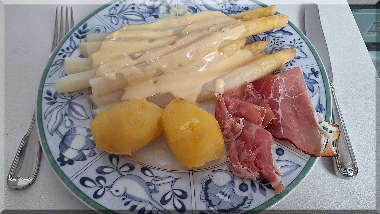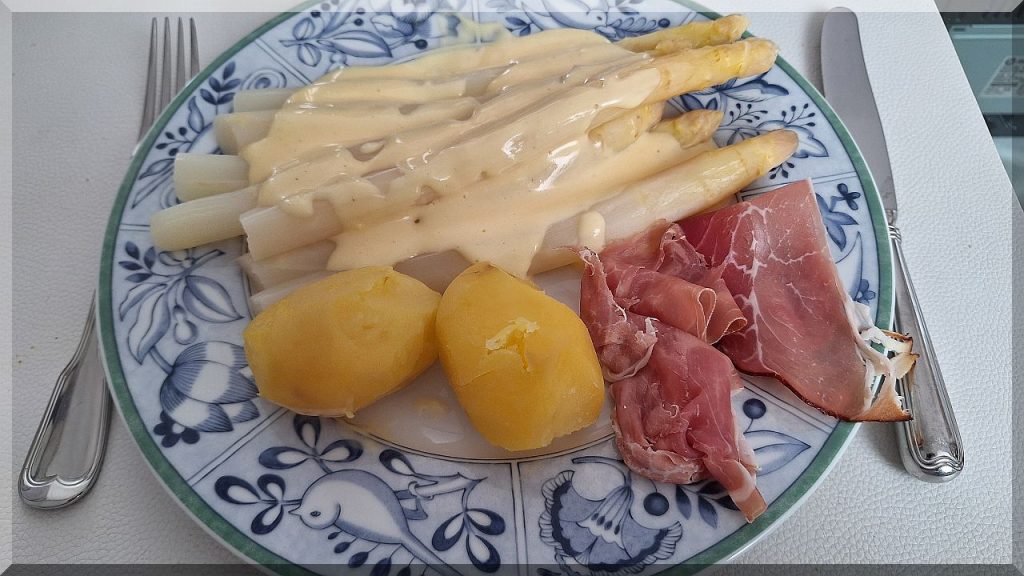 Zum Abendessen gibt es den ersten Deutschen Spargel der Saison: