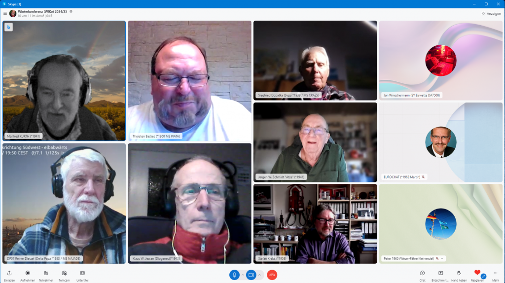 Ich eröffne unsere Skype Konferenz, was so nicht stimmt, denn ich bin erst um 19:40 Uhr zuhause und blende mich in die laufende Runde hinzu.: