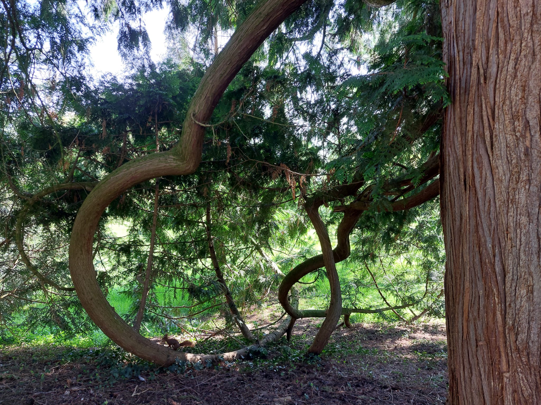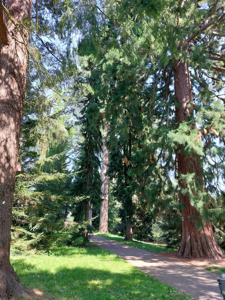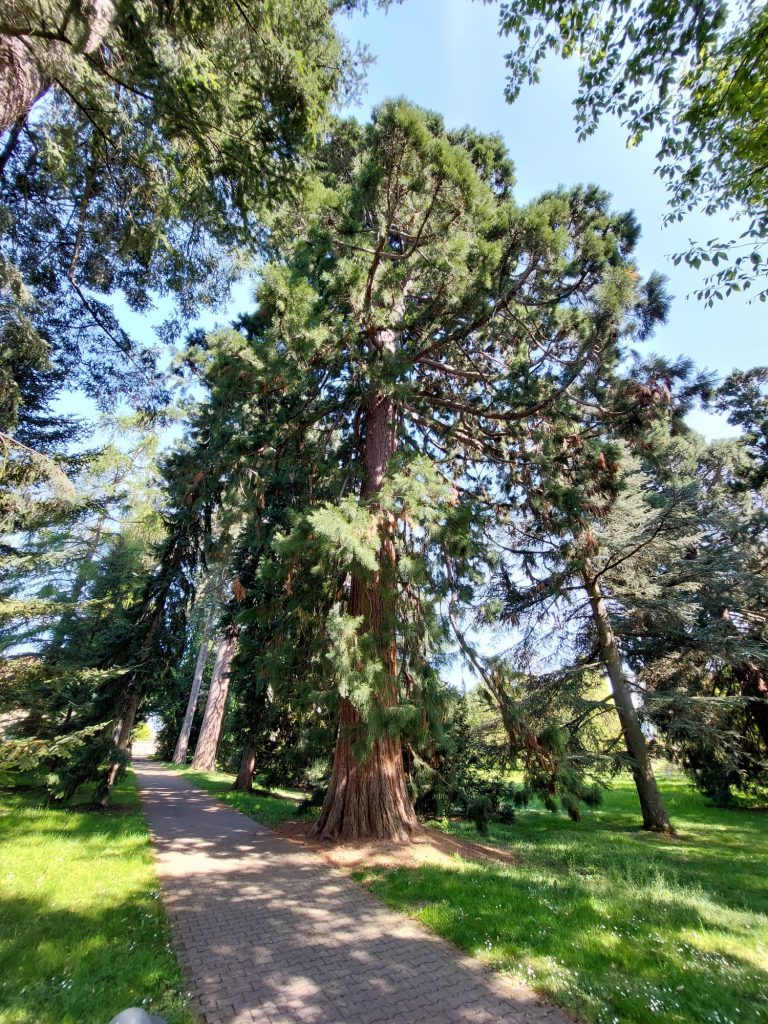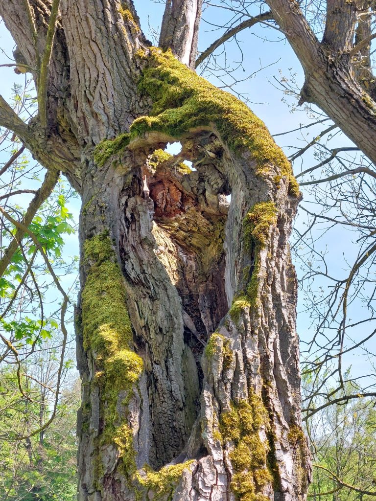 Man beachte die Drahtseile in den Baumkronen, die den Zerfall dieser Bäume verlangsamen sollen.