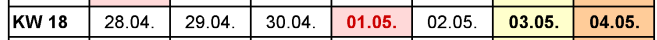 Donnerstag, 1. Mai: Feiertag / Tag der Arbeit