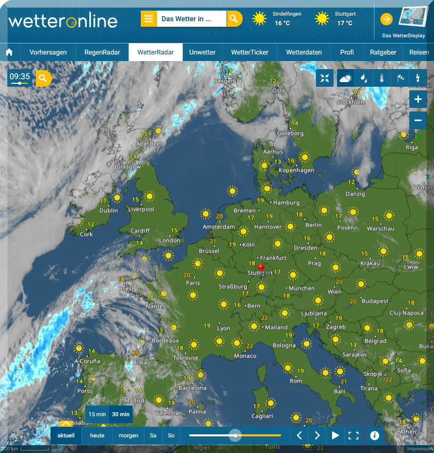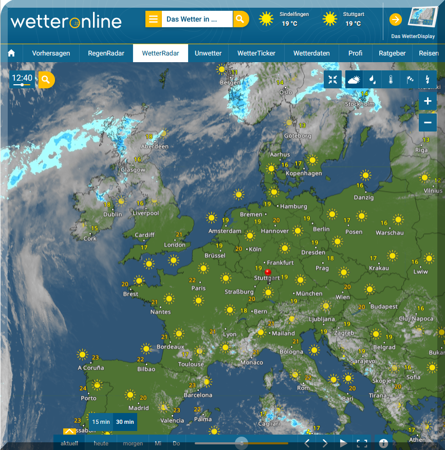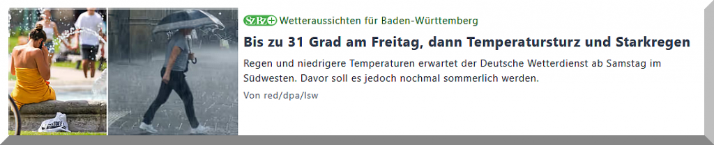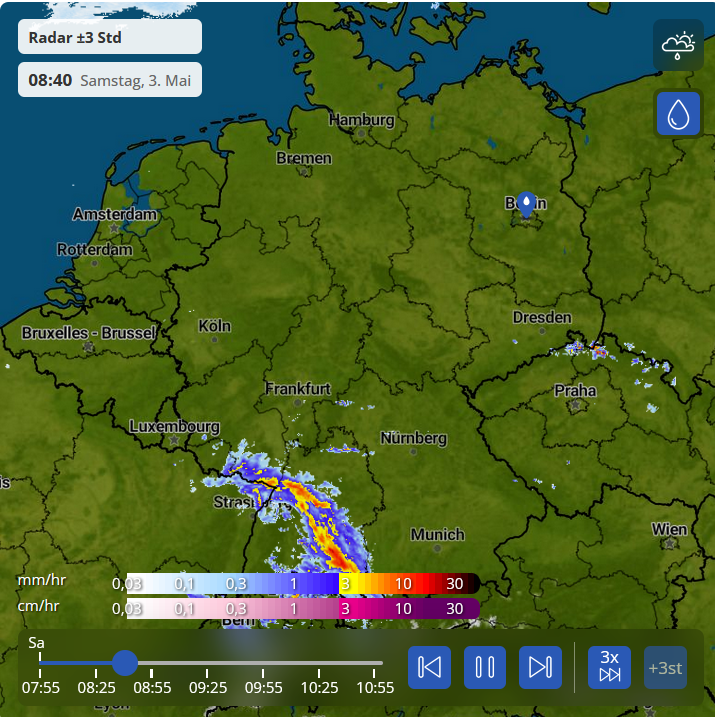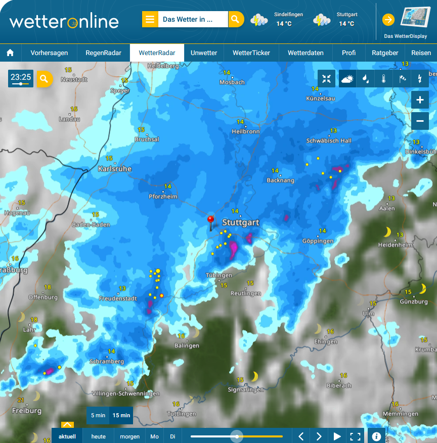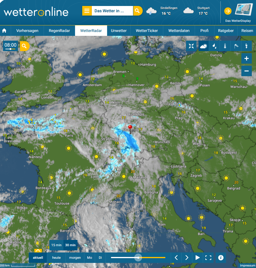 In Sindelfingen ist es zu 8/8 bedeckt. Der Regen war nicht sonderlich anhaltend – vielleicht 30 Minuten. Die Pflanzen auf unserer Plaza haben hörbar aufgeatmet und man kann ihnen beim Wachsen zusehen.