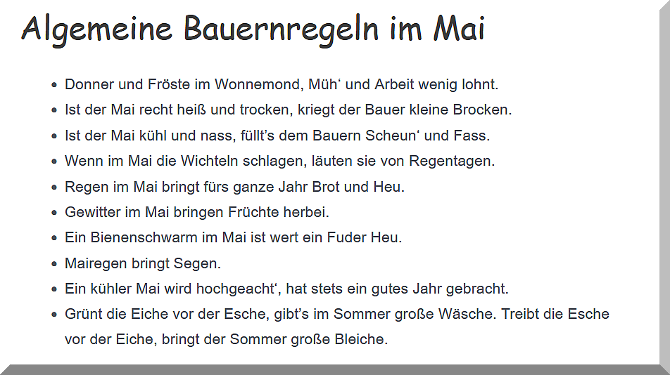 Ist der Mai feucht und naß, füllt’s dem Bauern Scheun‘ und Faß.