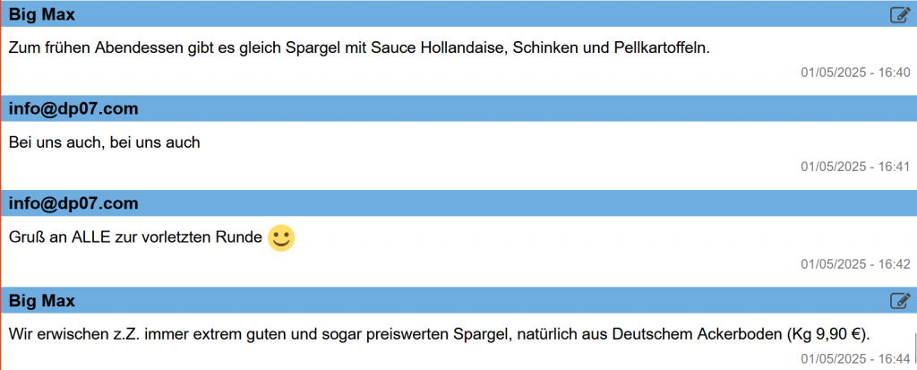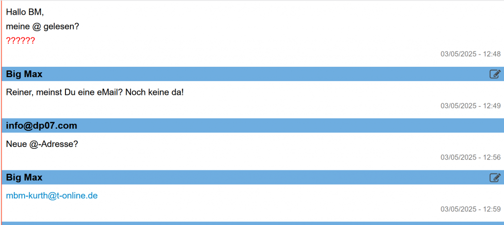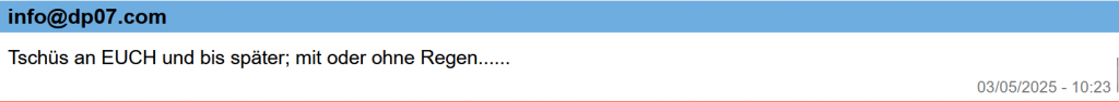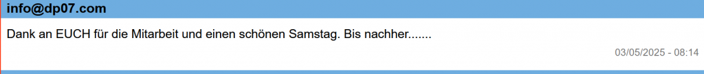 Ihr sendet die Antwort NUR per @ an info@dp07.com wie folgt:
