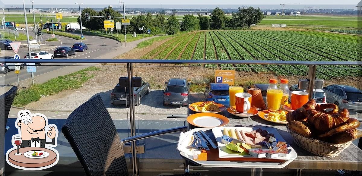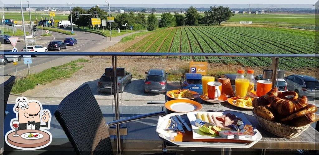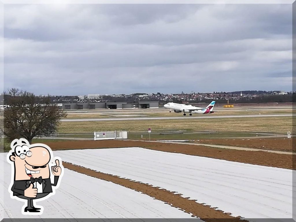 Nach dem Schlossgartenbesuch sind wir noch nach Filderstadt-Bernhausen in die Terrassen-Konditorei (Bäcker Schill) direkt an der Südseite vom Flugplatz Stuttgart-Echterdingen gefahren, um Kakao und Kuchen zu verspeisen und die Starts und Landungen auf dem Flugfeld von der Terrasse im 2. Stock hautnah zu beobachten.