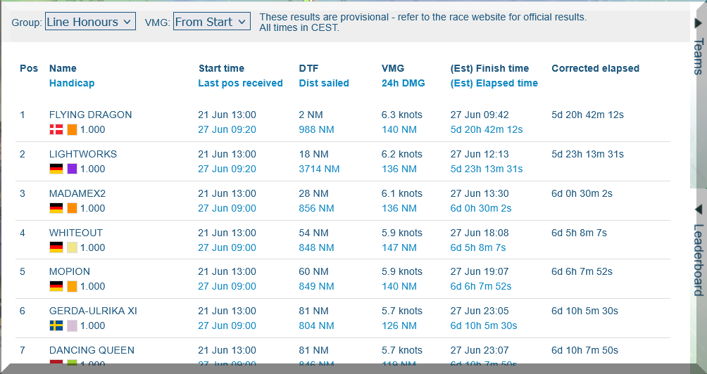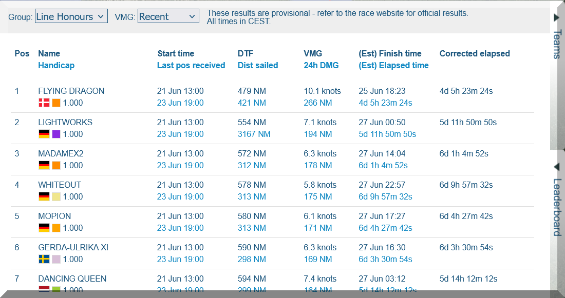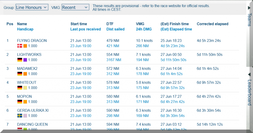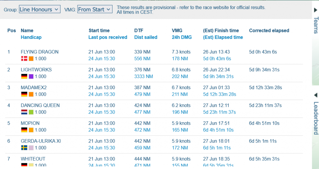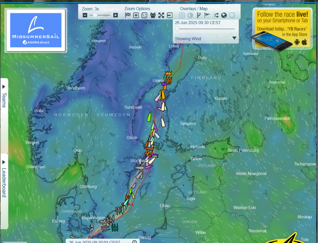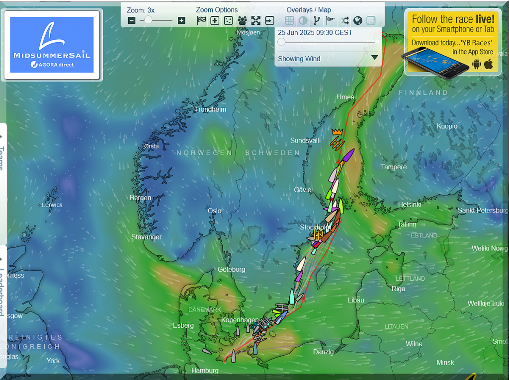 09:30 Uhr – Midsummersail: Von 83 gestarteten Schiffen sind nur noch 58 Boote in der Wertung.