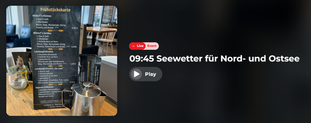 Wind Nord- u. Ostsee: SW/W 6 bis 7 Bft. in Böen bis 10 Bft.