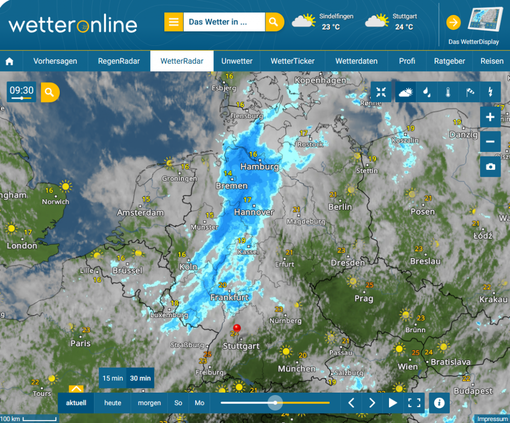 Ab zur Einkaufsrunde. Aktuelle Temperatur in Sindelfingen 27 °C