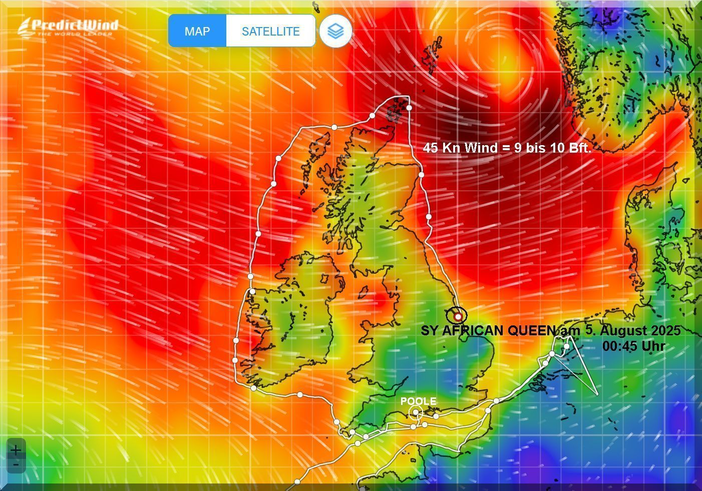 Bis nach Poole sind es jetzt noch ca. 200 sm, sofern er nicht kreuzen muss