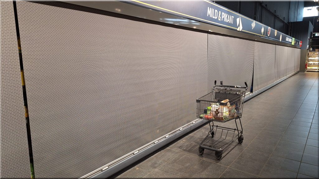 12 Uhr – Ab zur Einkaufsrunde bei garstigem Wetter. 14:30 Uhr wieder zuhause.