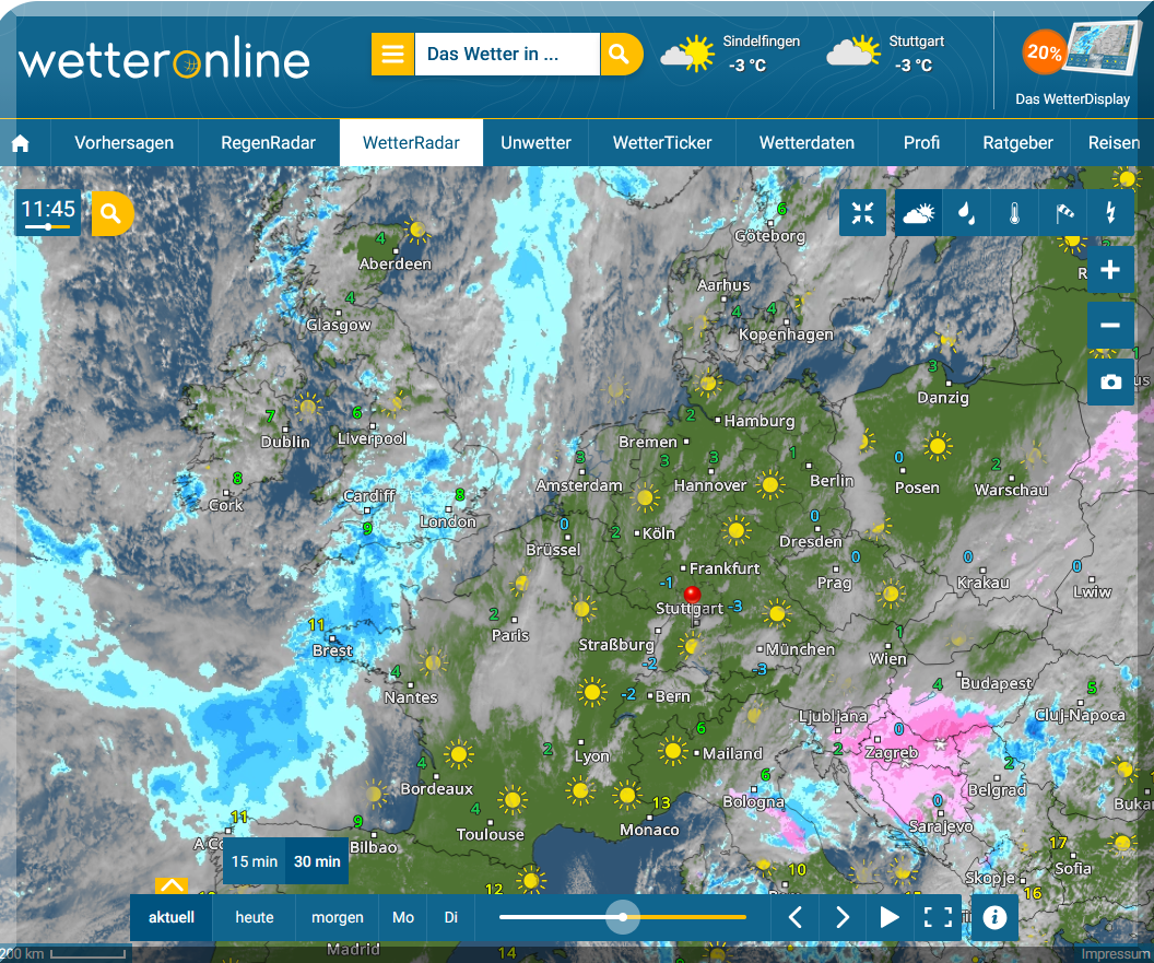 Die Woche beginnt in Baden-Württemberg mit einem wolkenverhangenen Himmel am Montag, bei dem es zu leichtem Schneefall kommen kann, sagen die Wetterfrösche.