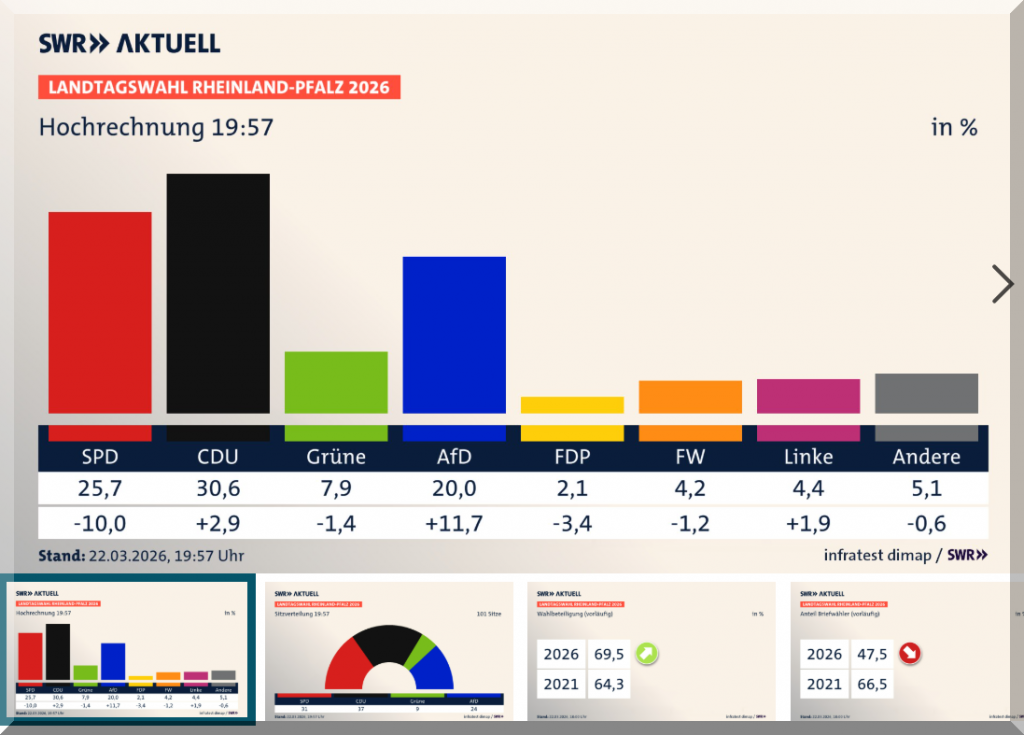 17 Uhr – Beginn der Landtagswahlberichterstattung in Rheinland-Pfalz: