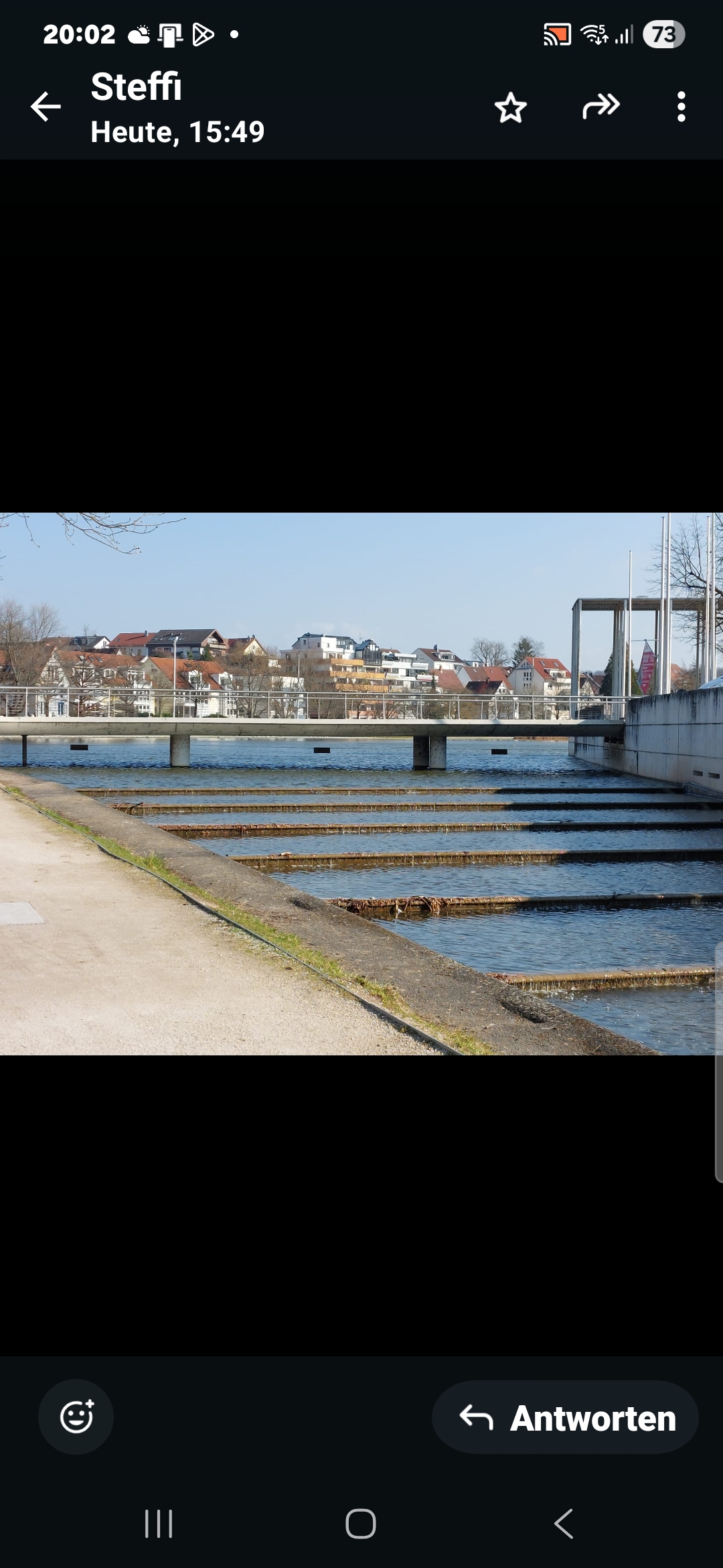 Steffi und ich, wir holen heute unseren Spaziergang nach? Ja! Diesmal an den Seen der Böblinger Kongresshalle. Viel Sonne, aber eiskalt.