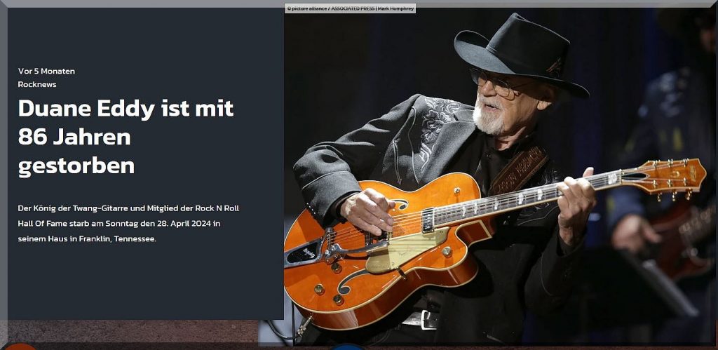 Ja, an Duane Eddy kann ich mich noch gut erinnern, war er doch unser Teenager-Idol mit seiner Twangy Guitar: