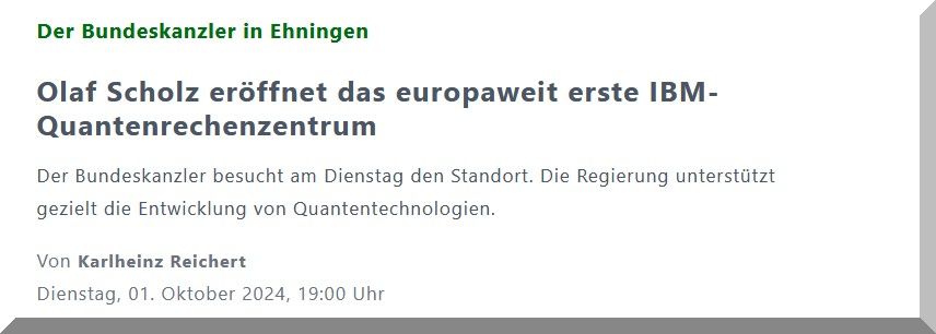 EHNINGEN. Das weltweit erste Quantenrechenzentrum der IBM, von dem Technologiekonzern Quantum Data Center genannt, steht in den USA. Das zweite wurde nun in Ehningen eingeweiht. „Die IBM hätte das überall auf der Welt bauen können“, stellte Bundeskanzler Olaf Scholz in seiner Festrede fest und führte dann eine ganze Reihe von Gründen auf, weshalb die Wahl des Unternehmens auf Deutschland fiel. Unter anderem: „Deutschland ist ein weltoffenes Land. Abschottungen sind Irrwege.“