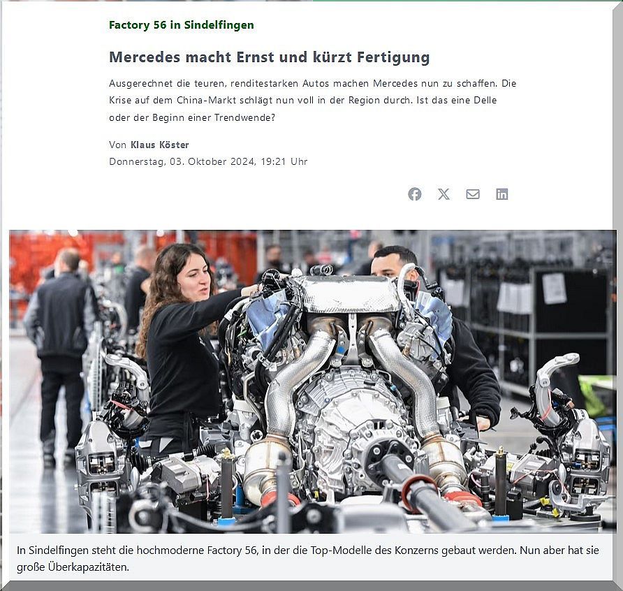 730 Millionen Euro hat Mercedes in die hochmoderne Fabrik Factory 56 investiert, in der seit vier Jahren die Top-Modelle des Unternehmens gebaut werden. Nun wird dort die Produktion strukturell gekürzt, indem das Werk im vierten Quartal in den Einschichtbetrieb geht. Damit setzt Mercedes nun die Ankündigung aus dem Sommer um, mit der man auf die unerwartet heftigen Absatzeinbußen bei den Luxusfahrzeugen reagierte. Dies bestätigte das Unternehmen unserer Zeitung.