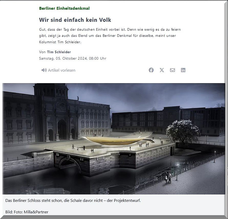 Gut, dass unser nationaler Festtag vorbei ist – inzwischen weiß man ja wirklich gar nicht mehr, wie all die offizielle Einheits-Freiheits-Friedlichkeits-Symbolik noch zu ertragen ist angesichts eines politischen Apparates, der vor sich hin bröselt, und einer Gesellschaft, in der die Wutpöbeleien immer neue Tabugrenzen reißen. „Tag der deutschen Einheit“? Nie seit 34 Jahren wirkte er so verzwungen wie gestern.