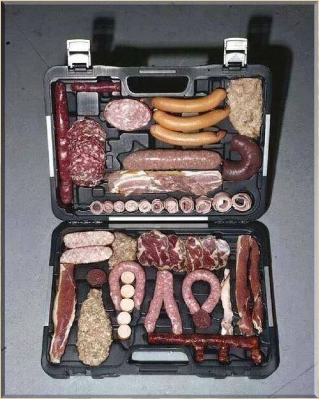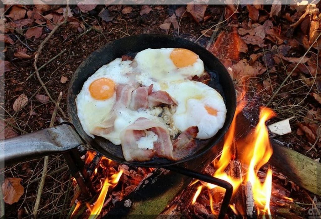 Falls ich einmal meine Rezeptsammlung nicht zur Hand haben sollte, helfen der nachstehende Notfallkoffer (l.), eine Pfanne und eine Feuerstelle.