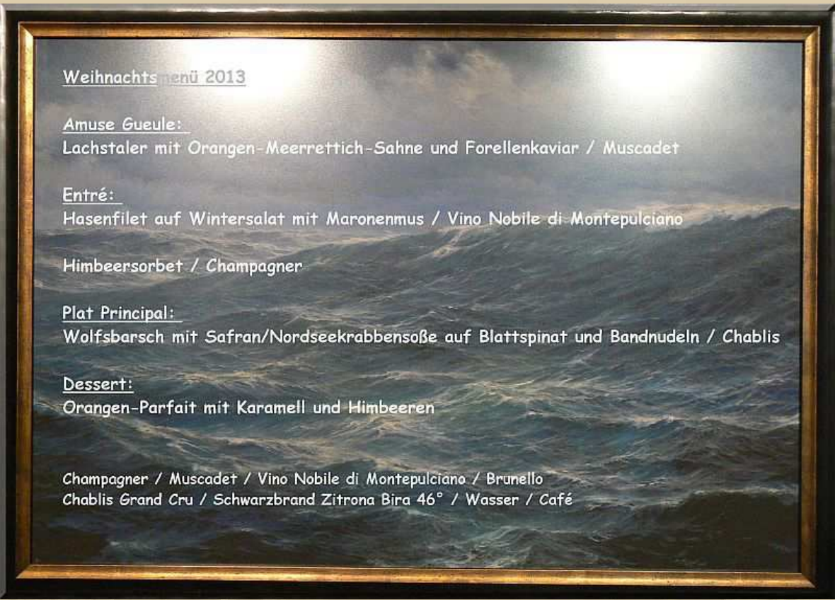 Atze hat im IBM Klub Böblingen vor vielen Jahren *) einen Vortrag über die Logistik von Verpflegung und Kochen auf Yachten gehalten. Ein nicht zu unterschätzender Wohlfühlfaktor: