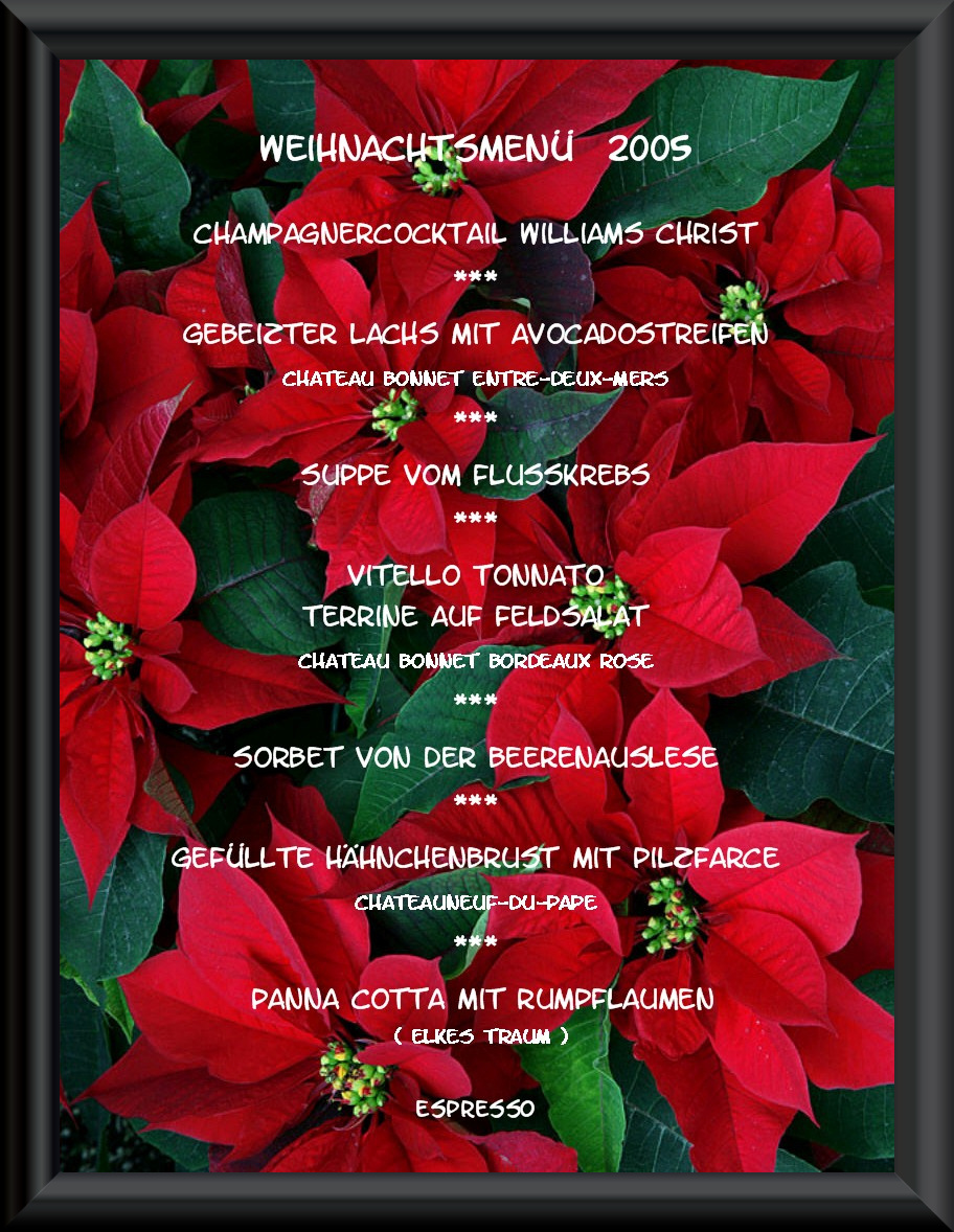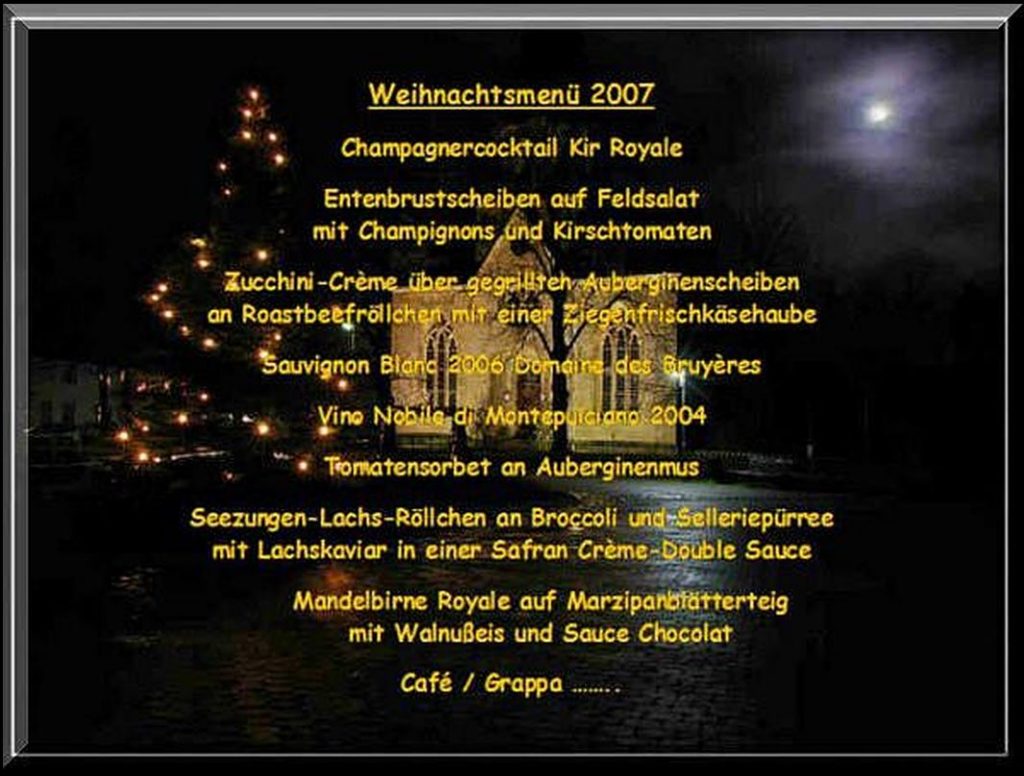 Mit unseren langjährigen Wegbegleitern, Elke & Michael, haben wir uns Jahr um Jahr mit dem Weihnachtsmenü immer abgewechselt.